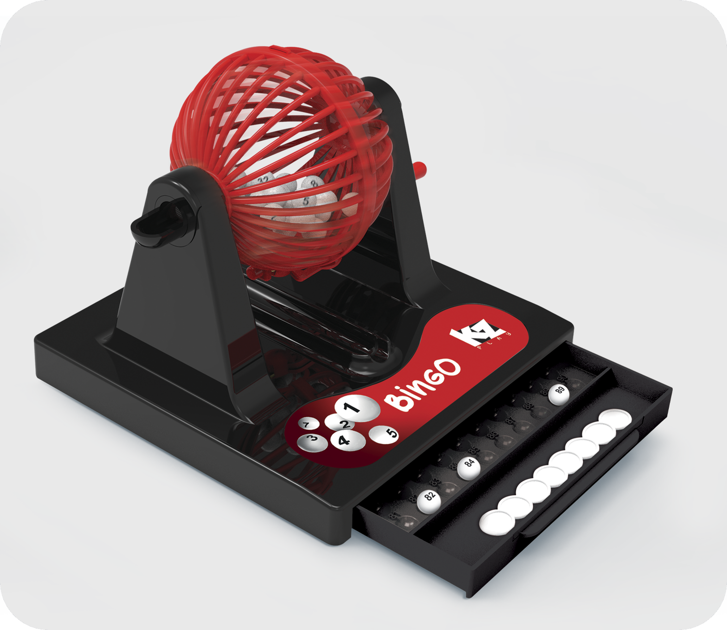 Conteúdo: 1 globo, 1 base com gaveta para guardar as peças, 90 bolinhas numeradas, fichas de marcação e 24 cartelas frente e verso reutilizáveis